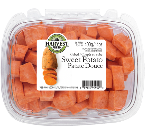 Harvest Fresh Sweet Potatoes are full of health benefits and sweet in flavour! Harvest Fresh has made life simple, with eliminating the prep work, washing, peeling, cutting. Simply all prepared and ready to cook!