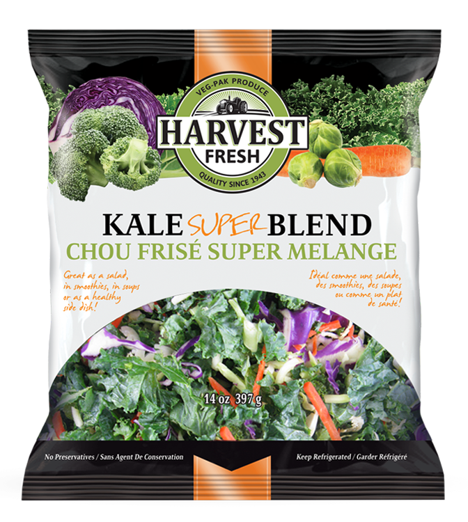 Our Harvest Fresh Kale Super Blend is a unique, healthy, delicious and simply ready-to-eat salad! Mix it with your favourite dressing, or add it to any meal and enjoy!