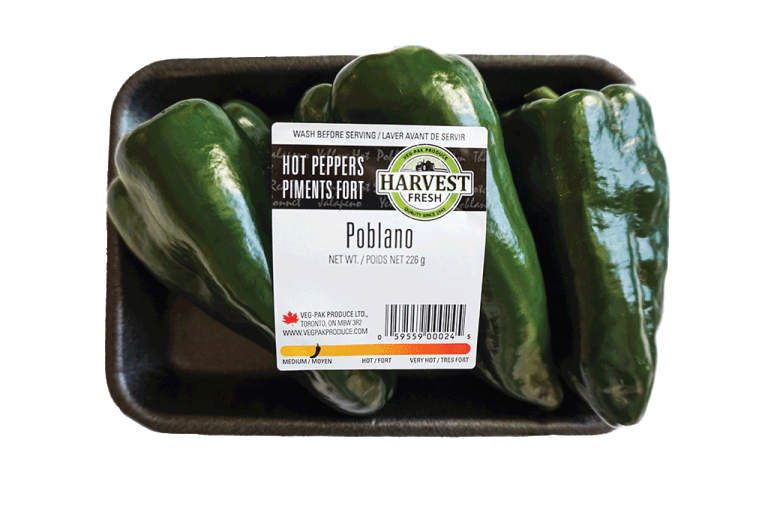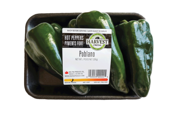 Poblano peppers are mostly used in Mexican and Southwestern cooking. They have thick , large, and round skin with dark-purplish green in colour. Our Harvest Fresh Poblano Peppers are perfect for roasting, Quesadillas, and chili soup.