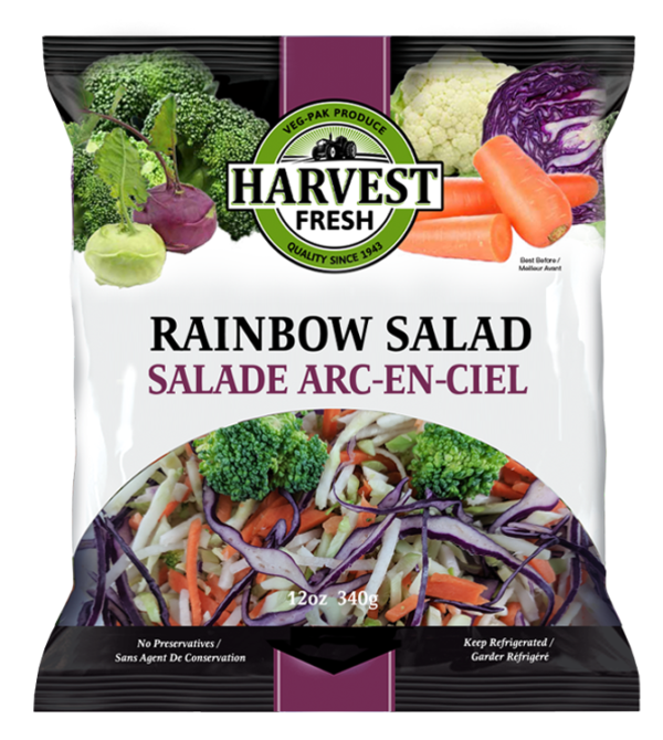 Our Harvest Fresh Rainbow Salad is a vegetable medley, easily made into a hearty meal, delicious salad, or tossed in soups or stir fry!