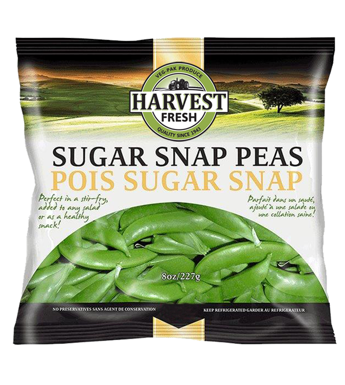 Harvest Fresh Sugar Snap peas are sweet, fresh, with a crunchy texture. Perfect in your salads, stir fry, or as a healthy snack!