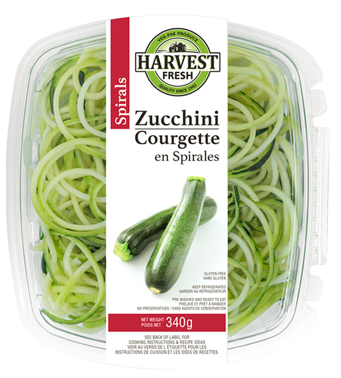 Harvest Fresh Zucchini Spirals are the perfect gluten free replacement for noodles! Easy to make, healthy and a splendid addition to any meal!